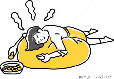 リラックスして暖かい飲み物を飲む女性のシンプルな線画イラスト