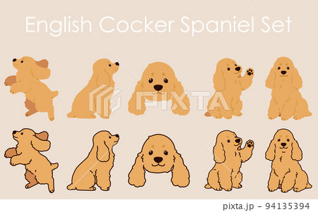 シンプルで可愛いイングリッシュコッカースパニエルのイラストセット 主線あり・なし