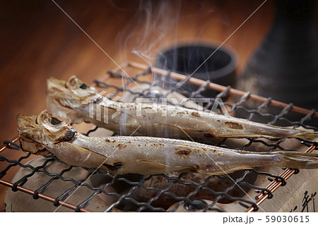 ししゃも 焼き魚 干物 魚卵 箸上げ 和食 白背景