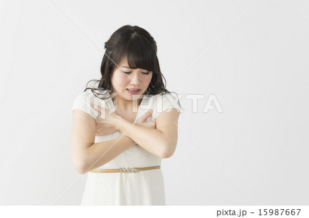 脇を気にする若い女性 ネガティブイメージ 脇汗