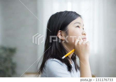 勉強する小学生の女の子