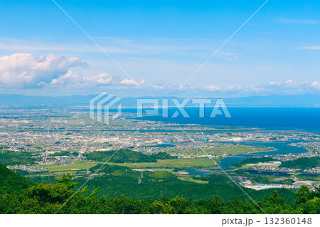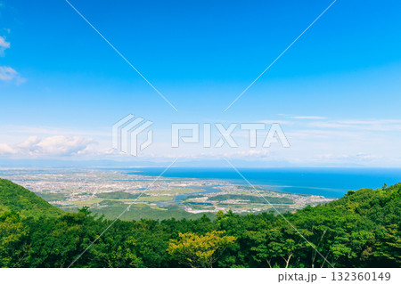日本 三重県伊勢市 伊勢志摩スカイライン沿いにある一宇田展望台から眺める伊勢湾