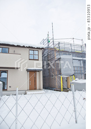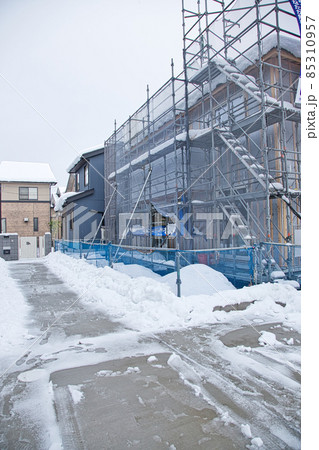 雪の建築現場