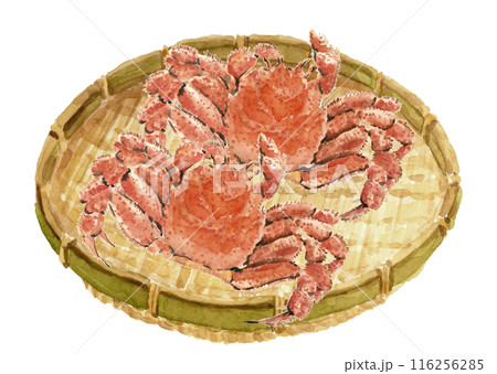 水彩で描いたザル盛りの毛ガニの水彩イラスト【手描き】白バック 透過背景