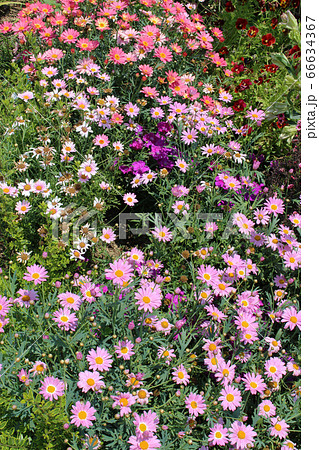 桃色の小さな菊の花畑