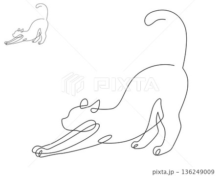 Continuous line drawing cat stretching. Side view single linear decorative design concept. Editable stroke vector illustration, Cat in one line for logo, Advertising.