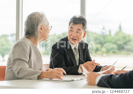 スーツ姿の高齢者・シニアと若者(セミナー,研修,教育,勉強会,世代交代,経営)