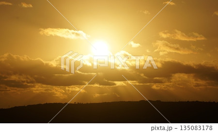 幻想的なオレンジ色の空と太陽