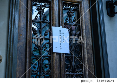 古風な扉の休業案内