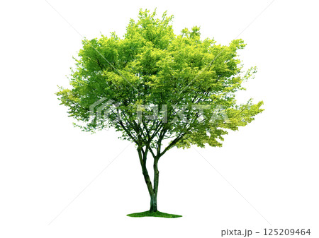 明るいグリーンの葉をまとう一本の木_建築パースや立面図で使える樹木の添景