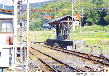 一畑方面の線路が残る一畑口駅構内の風景 ... 島根県 出雲市(晴れ)