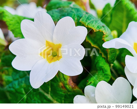 close up yellow primrose (Primula vulgaris)