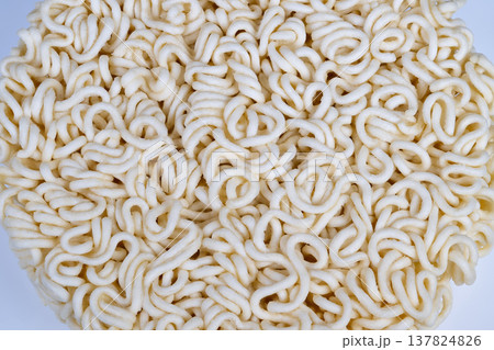 Instant noodles texture background, dry ramen noodle macro pattern