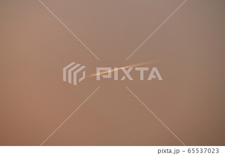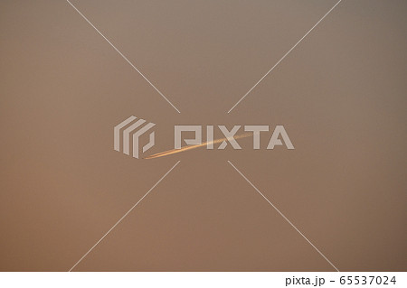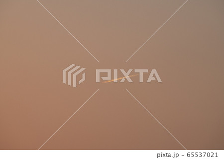 日本の東京都市景観 コロナで大気汚染改善?・視界良好・一筋の光明・夕焼けに映える遥か彼方の飛行機雲