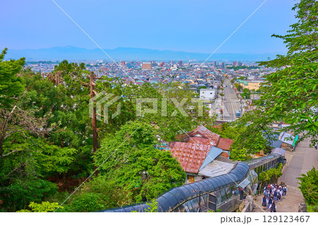 福島県会津若松市飯盛山のさざえ堂広場付近の石段から西側の市街眺望