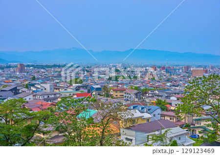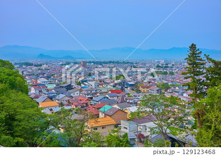 福島県会津若松市飯盛山のさざえ堂広場付近から西側の市街眺望
