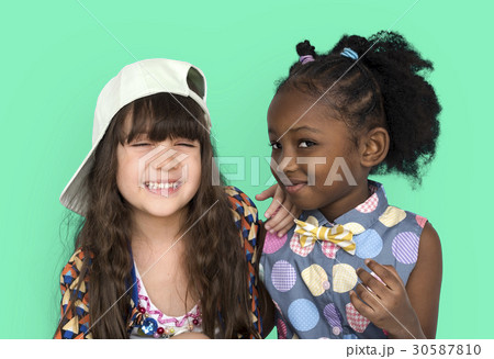 Diversity Women Set Gesture Standing Together Studio Isolated