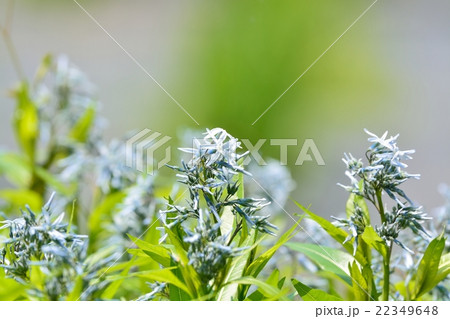雨上がりの5月に咲いた青くて美しい丁字草(チョウジソウ)の花