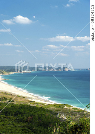 鹿児島県 種子島 南種子町の七色観望所から門倉・前之浜自然公園をのぞむ