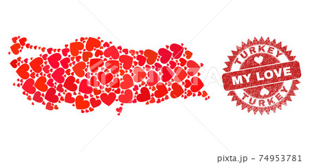 My Love Rubber Stamp Seal and Turkey Map Heart Mosaic