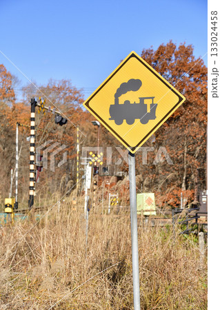 晩秋の北海道七飯町で道路標識のある風景を撮影