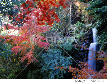 湯河原町 万葉公園湯河原惣湯の万葉亭と散策路と紅葉