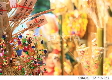 酉の市 縁起物の熊手 縁起熊手を飾る屋台