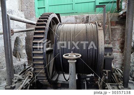 世界文化遺産の旧三池炭鉱万田坑 明治時代創業時に使われた蒸気動力式エレベーター巻き上げ機