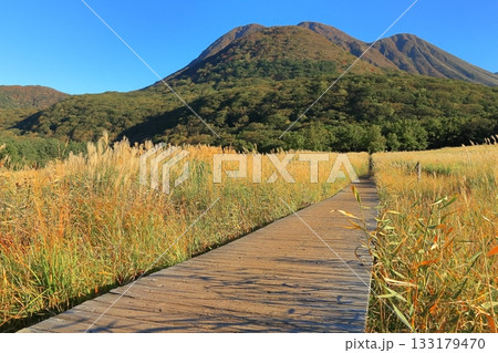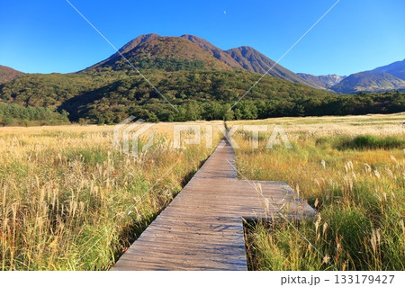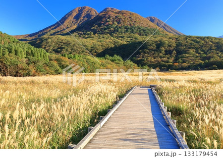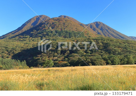 【大分県】長者原園地から見たタデ原湿原と九重連山の紅葉