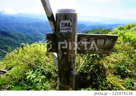 飯豊連峰の牛ヶ岩山付近からの種蒔山と三国岳