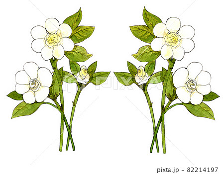 クチナシ ひと重咲のシンプルな水彩イラスト 手描き