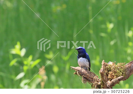 青い背中の美しい鳥ヒタキ属の夏鳥オオルリ