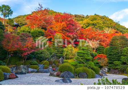 京都 秋の三室戸寺を彩る紅葉と枯山水の日本庭園