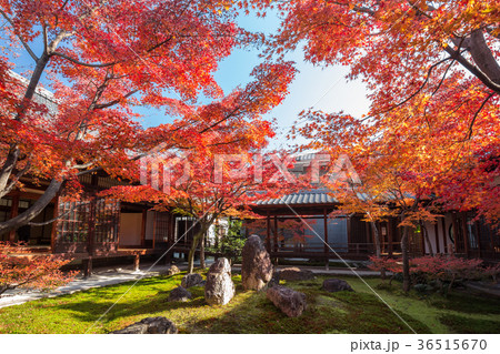 京都東山の秋 建仁寺 紅葉に包まれた潮音庭