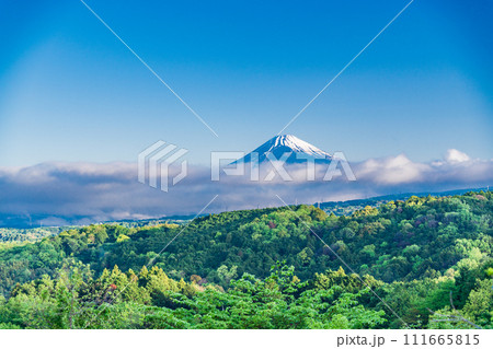 (静岡県)新緑に包まれたNEGURAキャンプ場から望む富士山