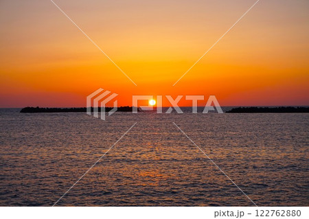 夕日 朝日 水平線 新潟県 出雲崎魚港 海 日本海