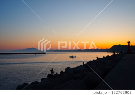 新潟県 出雲崎魚港 海 日本海 灯台 釣り 船