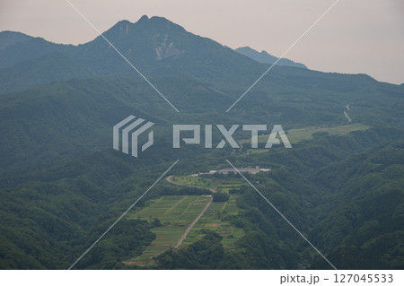 日本の岡山県と鳥取県を跨ぐ三平山の美しい初夏の風景