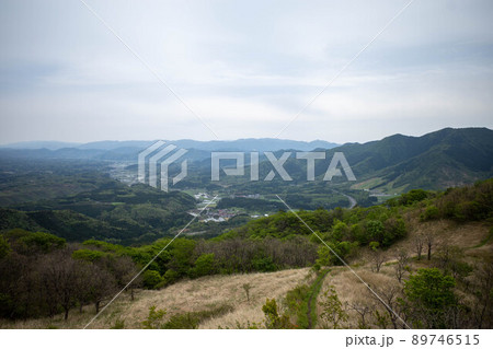 日本の岡山県と鳥取県にまたがる三平山の美しい初夏の風景
