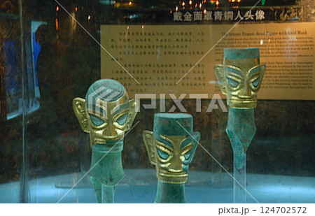 中国 四川省 長江文明 三星堆遺跡博物館 第2ホール 被金面覆青銅人頭像