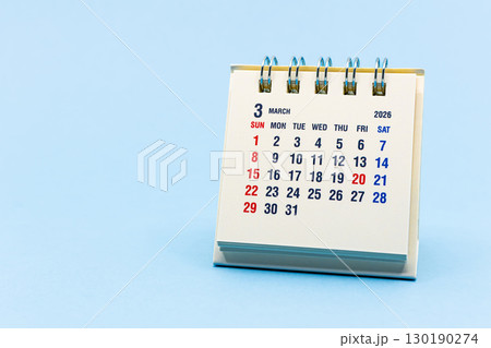 2026年3月カレンダー 水色背景