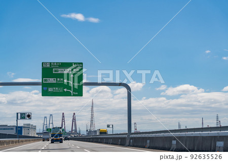 愛知県 伊勢湾岸自動車道の名港中央インター出口を走行中の車