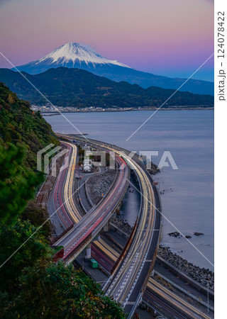 (静岡県)夕闇迫る薩埵峠から望む、富士山