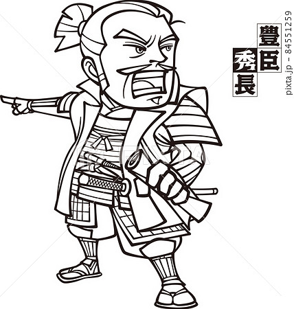 指差しで命令を下す豊臣秀長【3頭身・白黒】