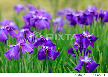 北海道苫小牧市、錦大沼ハナショウブ園で咲き誇るハナショウブ・紫式部(伊勢系)【7月】