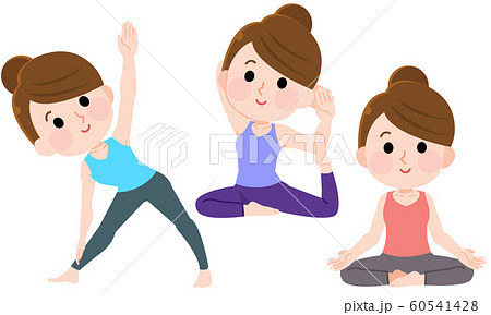 ヨガのポーズをする女性のセット 人物イラスト素材集