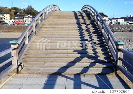 錦帯橋と幾何学的な影の風景