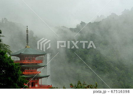 和歌山県 那智大社 青岸渡寺三重塔と那智の滝