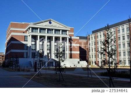 杏林大学 正面の立派な建物 夏晴れの青空 東京都三鷹市