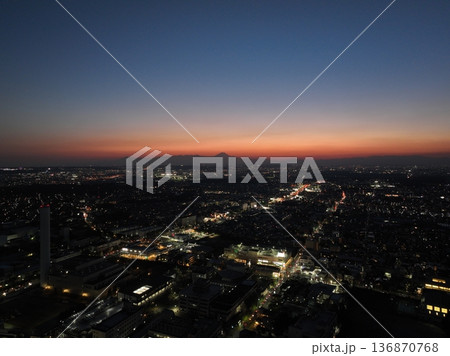 <鳥瞰>三鷹上空・武蔵野の夕景と富士山